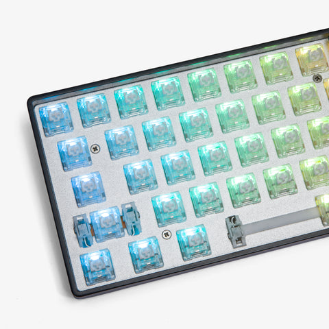 Our signature 65% keyboard (dedicated arrow keys) with dye-sub PBT keycaps. Features hot-swappable switches, aluminum plate, and silicone dampening.